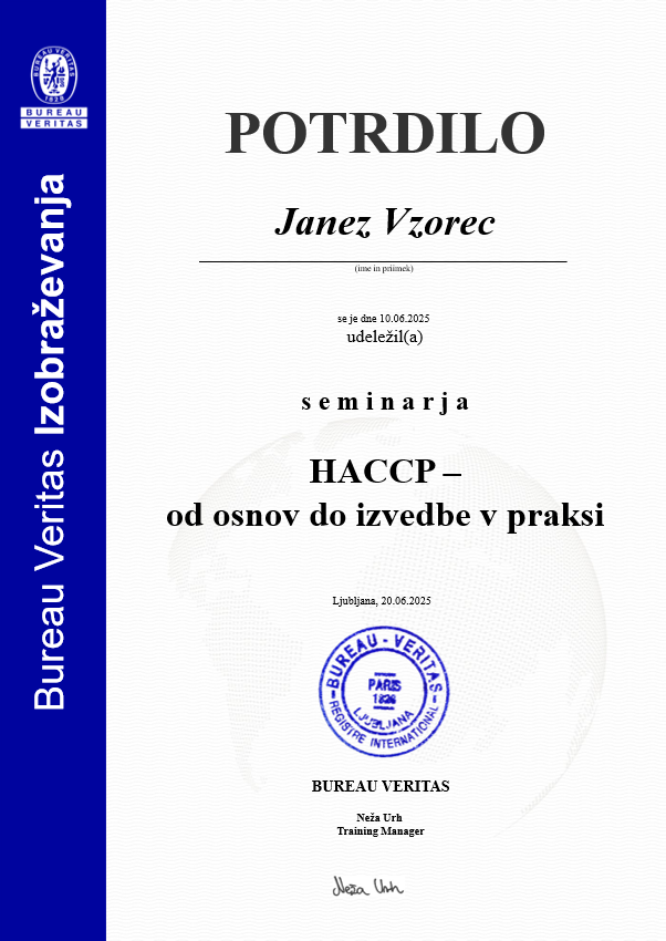 Seminar HACCP – Od osnov do izvedbe v praksi
